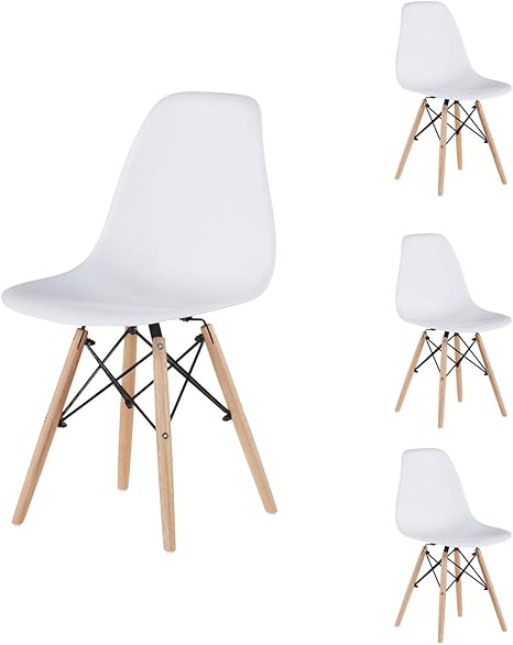 Amazon Com Gynsseh Modern Plastic Chair Mid Century Dining Chairs Set Of 4 Pre Assembled Kitchen Chairs With Thickened Seat Surface And Solid Wood Leg For Outdoor Living Room Bedroom White Kitchen